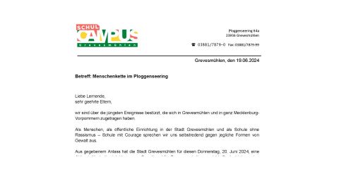 Mitteilung zum rassistischen Vorfall in Grevesmühlen am 14.06.2024
