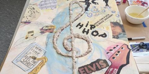 Einige begabte Schülerinnen unserer Schule gestalten unter der Leitung von Frau Nowack große Leinwände für den neuen Schulcampus. Die Ergebnisse sind großartig.