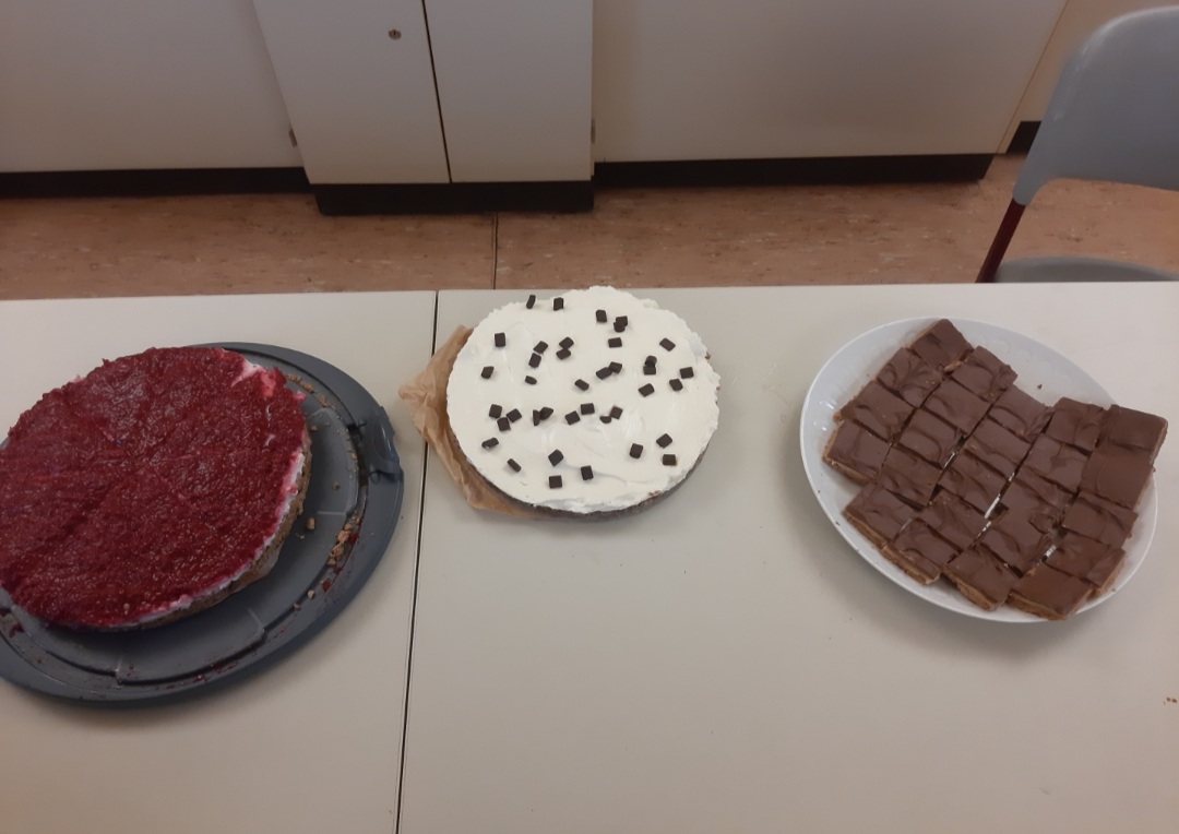 Nun ging es zur Verköstigung der No-Bake Kuchen. Die restlichen Schüler*innendes Produktiven Lernes probierten jeden einzelnen Kuchen.