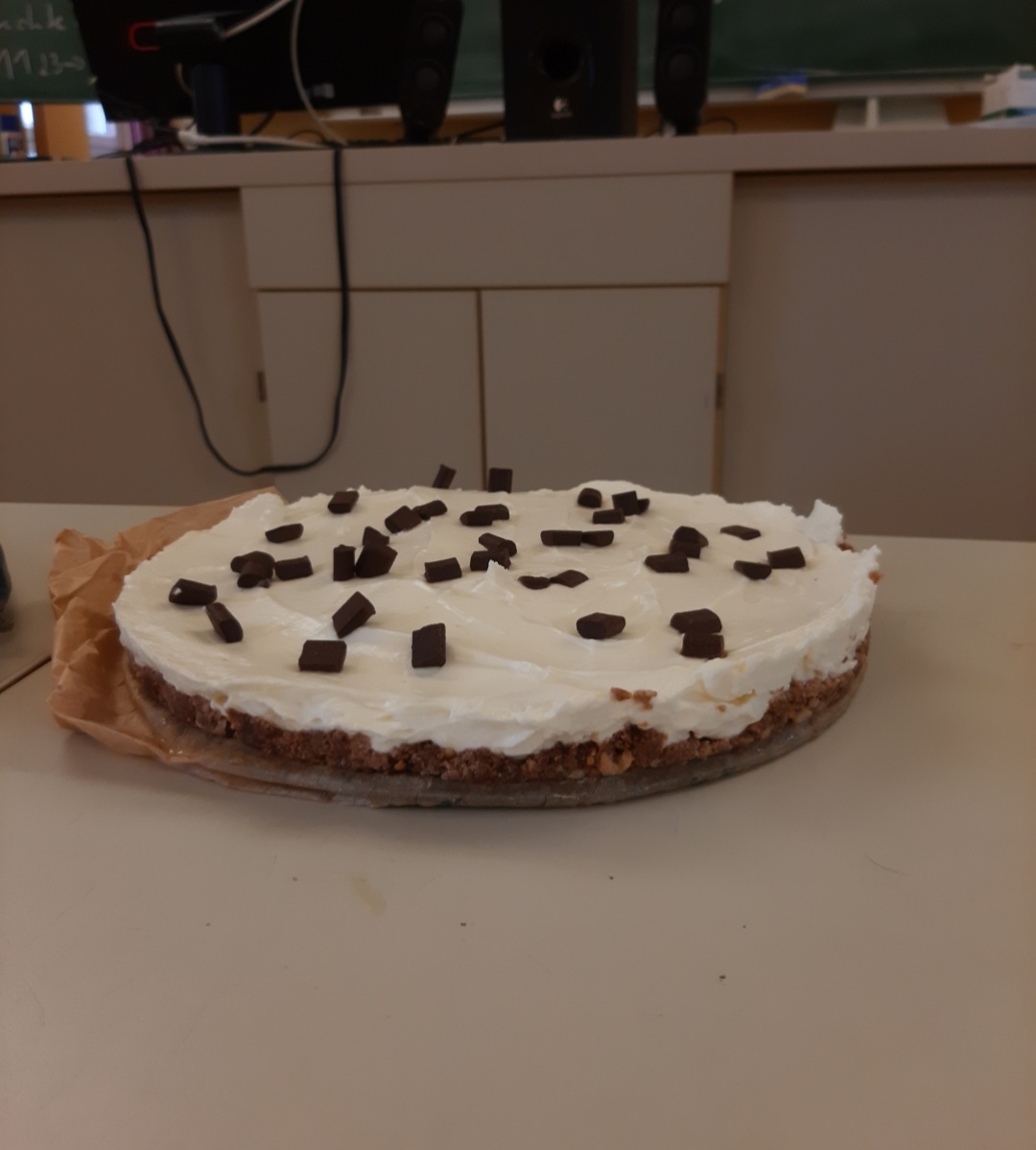 Der zweite Teilnehmer, Herr Schulte (motivierter Projektleiter des Produktiven Lernens), nahm eine ganz andere Richtung ein und entschied sich für einen No-Bake Schokoladenkuchen. Er kreierte eine Schokoladencreme aus geschmolzener Schokolade und Sahne. Das Ergebnis war ein schokoladiger Traum ohne Backen.