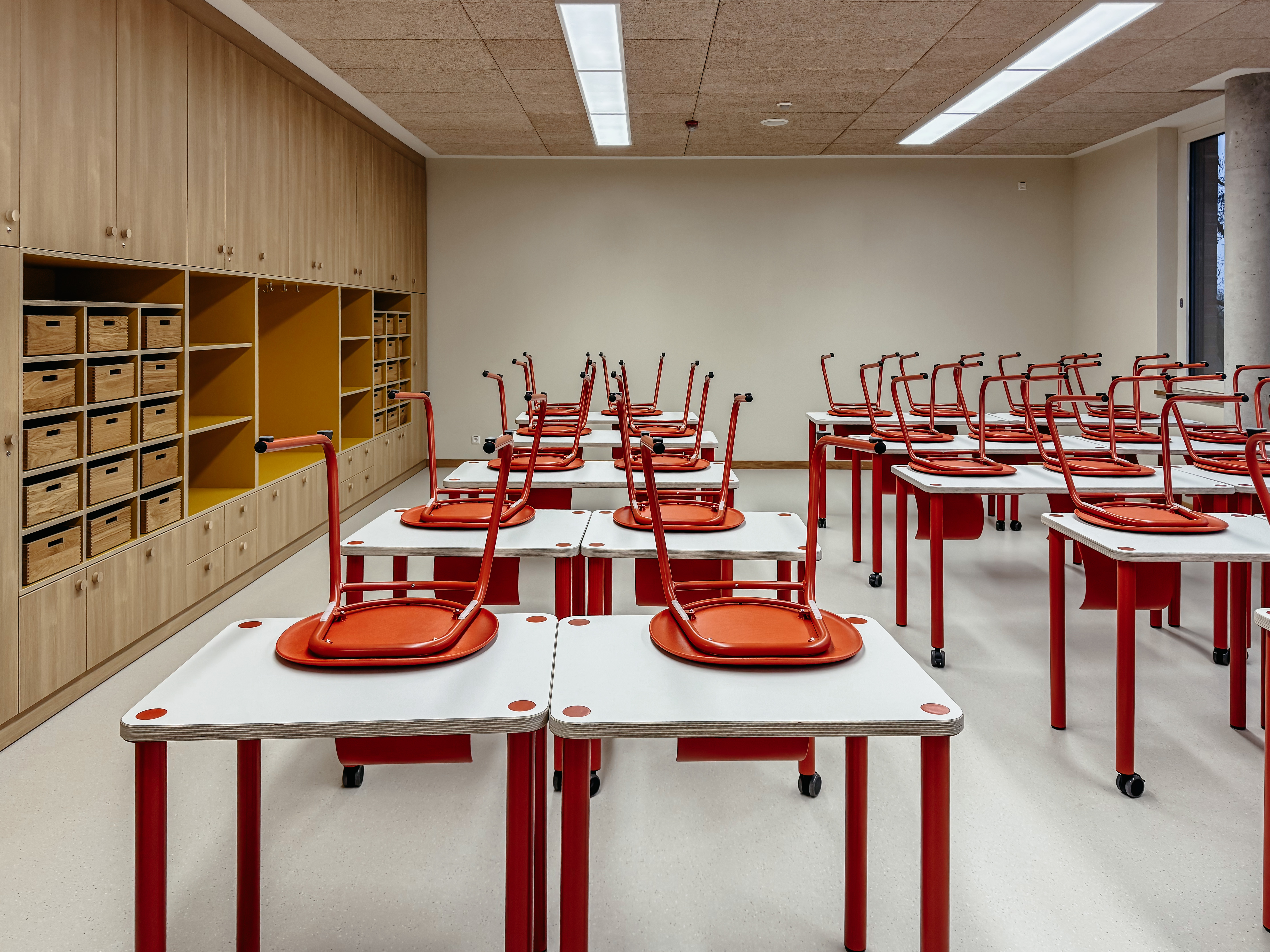 In der neuen Regionalen Schule laufen die letzten Arbeiten auf Hochtouren. In den vergangenen Tagen wurden Folierungen angebracht sodass viele Räume nun schon von außen anhand eines Piktogrammes erkennbar sind. Zudem erfolgen letzte Maler- und Reinigungsarbeiten.