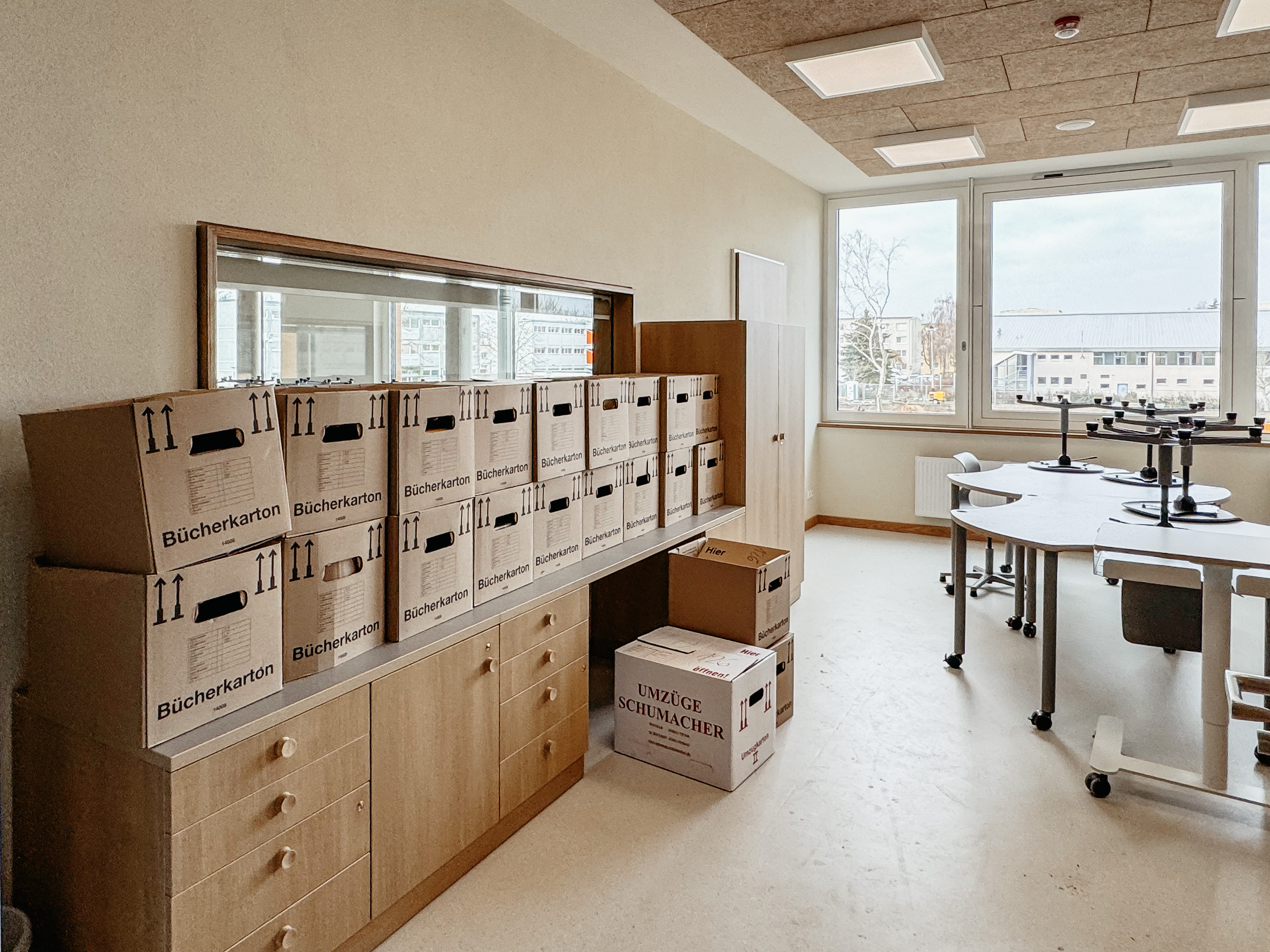 Der Umzug in das neue Schulgebäude ist also in vollem Gange, sodass die Schülerinnen und Schüler und natürlich auch die Lehrerschaft am kommenden Montag alles Notwendige in Ihren neuen Räumlichkeiten vorfinden.