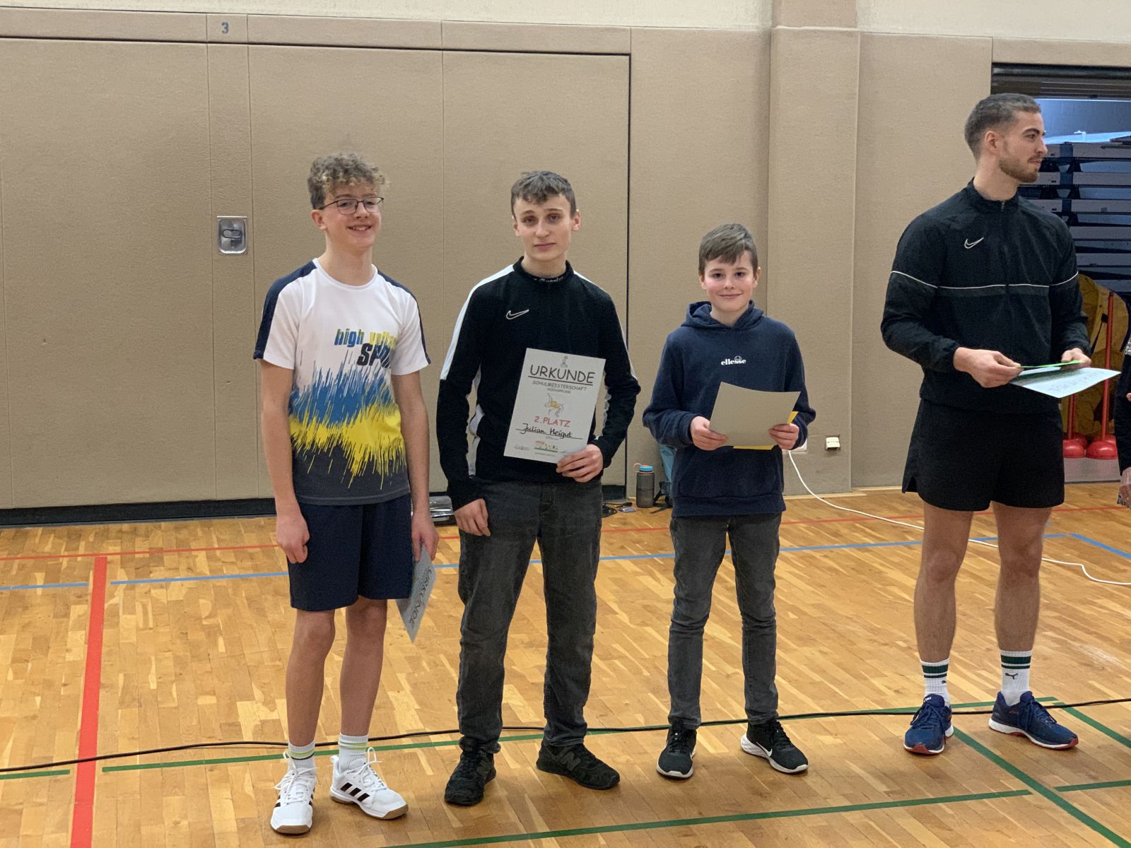Bei den Jungen gewannen Arno, Julian und Jakob. Die höchste Sprungweite erzielte Willi mit 1,55 m. Mit dieser Höhe würde er übrigens auch über Arno springen können.