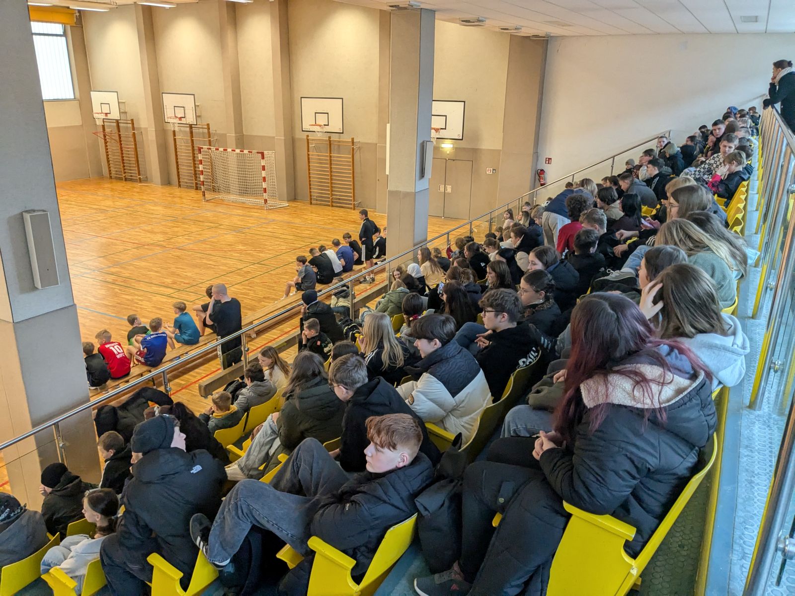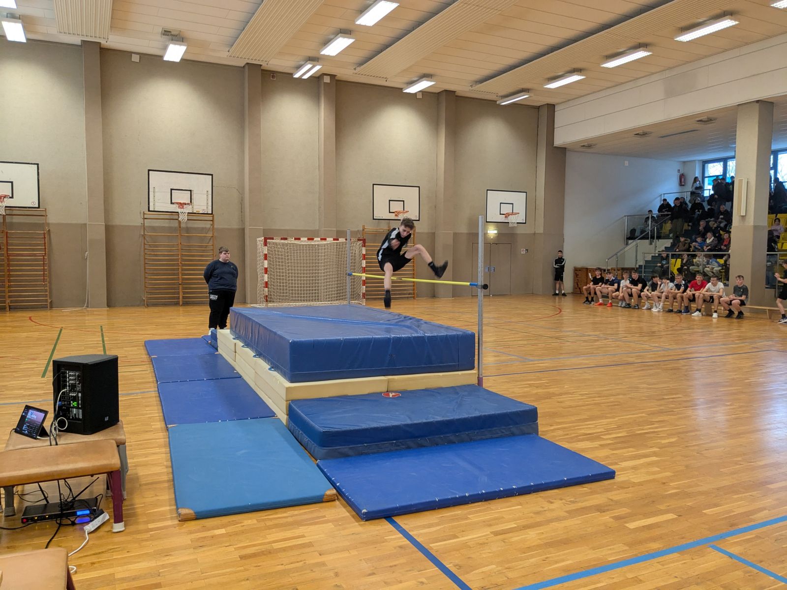 Am 29.11. fand in der Turnhalle die Schulmeisterschaft im Hochsprung statt. Viele Schüler und Schülerinnen qualifizierten sich durch hervorragende Leistungen im Sportunterricht. Im Wettbewerb wurden die Sprunghöhen schrittweise erhöht, bis jeder Teilnehmer sein persönliches Limit erreichte. Die 10. Klassen übernahmen dabei die Aufgaben als Helfer und sorgten für die Essensversorgung.