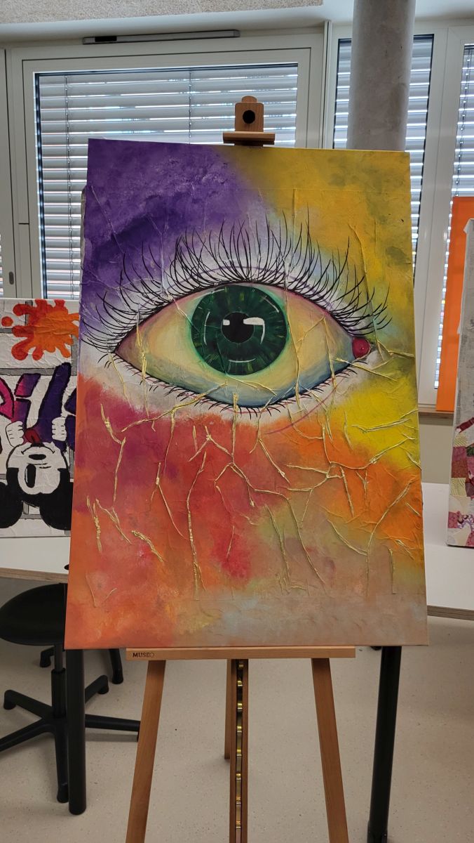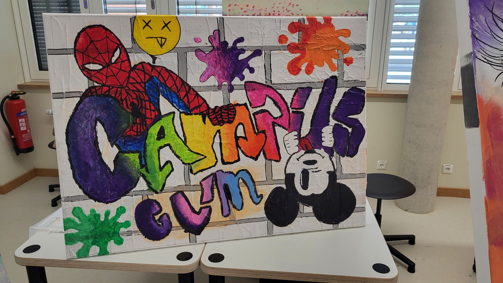Wer sich im Kunstunterricht bei Frau Nowack bewies, bekam in den letzten Monaten eine besondere Ehre: die Erstellung großer Gemälde für das neue Schulgebäude. Auch letzte Woche engagierten sich einige 6.-9. Klässler für diese Aufgabe und bewiesen enormes künsterlisches Können und erstellten Meisterwerke. Noch sind aber nicht alle Bilder komplett fertig.