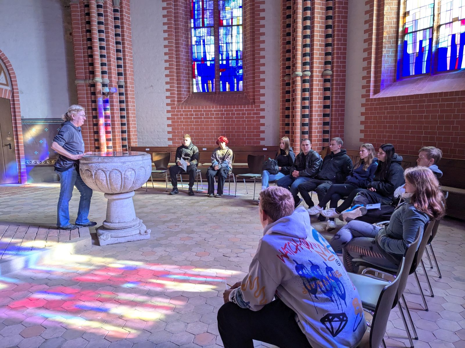 Wir waren am gestrigen Tag (12.09.2024) mit der PL-Klasse auf ein kulturelles Abenteuer gegangen. Wir hatten vor, uns das städtische Museum sowie die St. Nikolaikirche in Grevesmühlen anzusehen. Dort angekommen, wurden wir in zwei Gruppen aufgeteilt. Wir wurden freundlich von dem Museumsleiter Herrn Franck und der Küsterin Frau Flügel begrüßt.