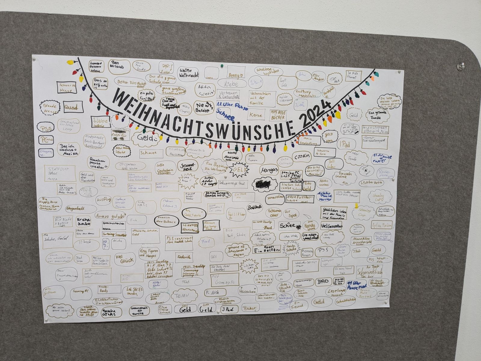 Für den Weihnachtsschmuck zeichnet sich Frau Nowack aus, die mit Hilfe einiger Schüler und Schülerinnen das Haus festlich dekorierte. Sie hängte zudem eine öffentliche Weihnachtswunschliste aus, die von den Kindern und Jugendlichen fleißig ausgefüllt wurde.