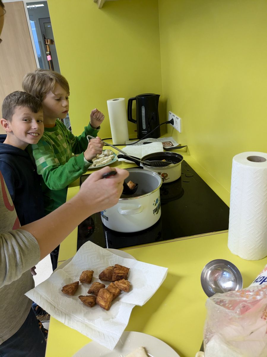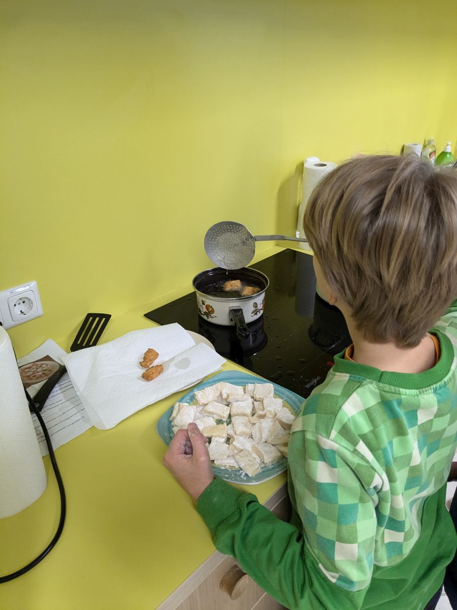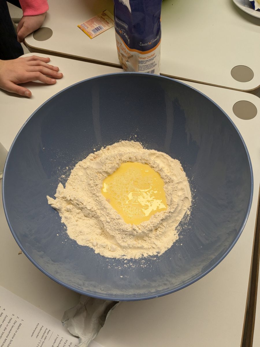 Und auch im Ganztagsbereich hielt das Thema Einzug. In der GTS "Kochen und Backen" wurde ein Hefeteig vorbereitet und daraus dann Mutzen gebacken, was dem Kurs auch gut gelang.