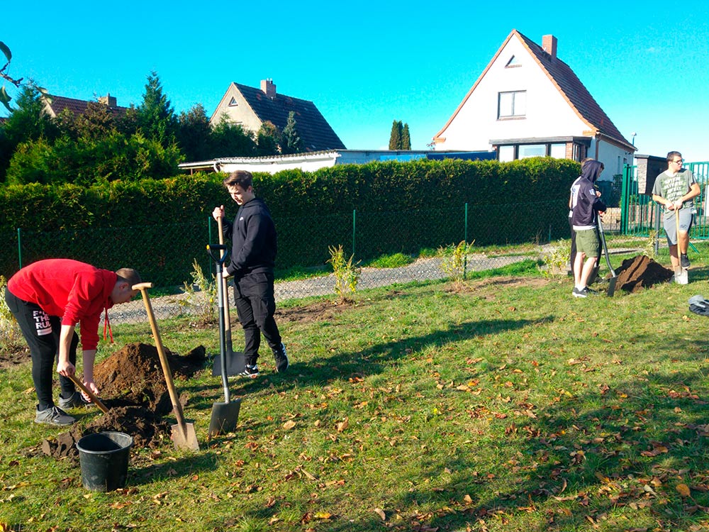 Wir danken allen ehemaligen Personen, durch deren Einsatz der Schulgarten überhaupt erst möglich gemacht wurde, den Kleingartenverein „Am Wasserturm e.V.“ für seine Unterstützung, die Saatgutspenden durch unterschiedliche Naturvereine und alle Nachbarn für die Geduld gegenüber unseren Schülern.